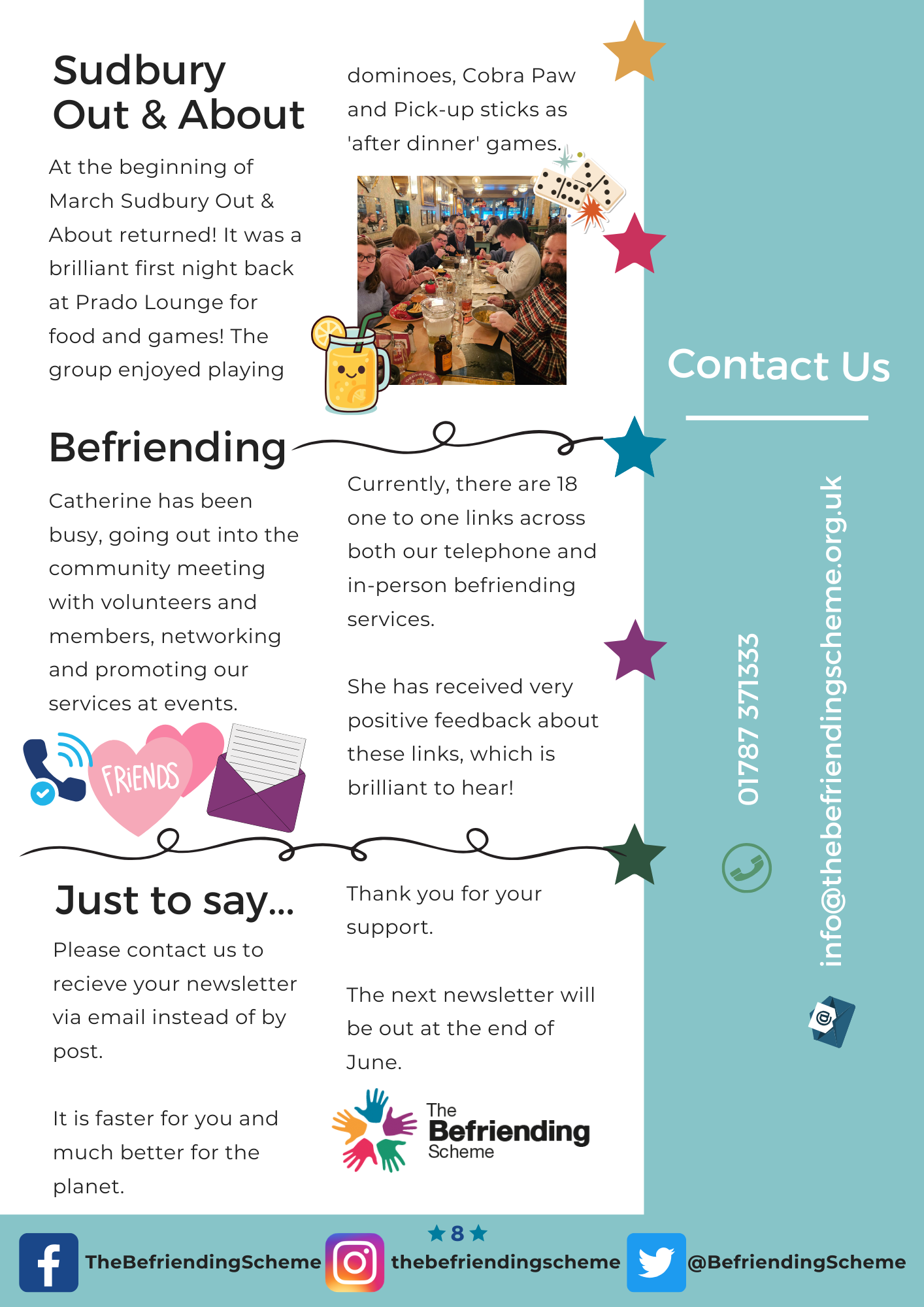 The Befriending Scheme 31 March 2026 Latest Newsletter The Befriending Scheme 31 March 2026 Sharing our latest newsletter which provides highlights from the last few months from all of our services across Suffolk…
